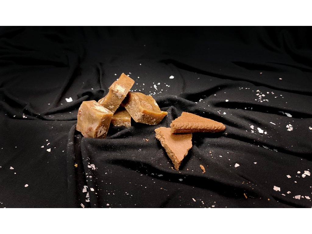 Karamela s lískovými ořechy, domácím perníkem a mořskou solí.